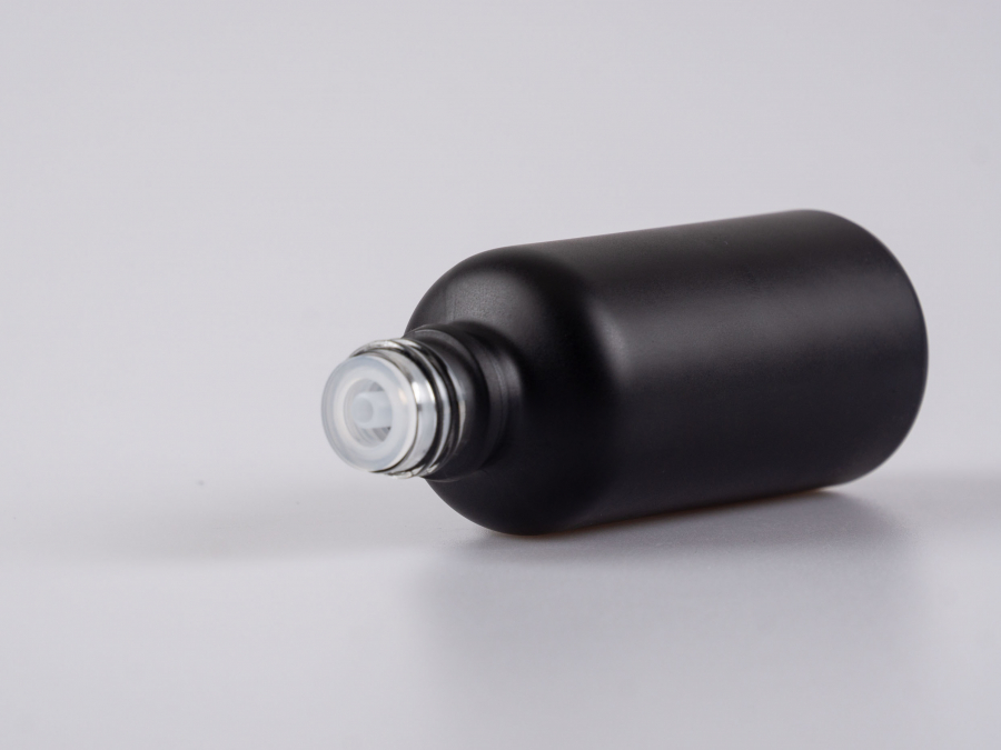Schwarzglasflasche 100ml, mit Tropfmontur Walnut