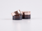 Braun und Rosé, eine zarte Kombination. Erhältlich mit 2 Deckelvarianten: glanzrosé und mattrosé.