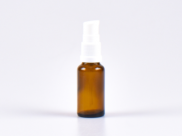 Braunglasflasche 20ml, mit Lotionspumpe Kunststoff
