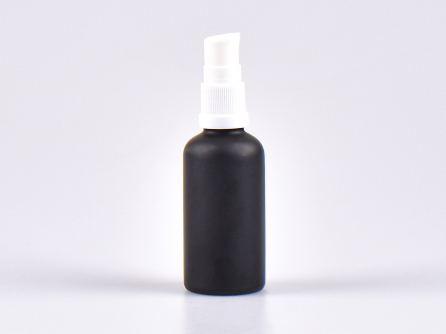 Schwarzglasflasche 50ml, mit Lotionpumpe Kunststoff
