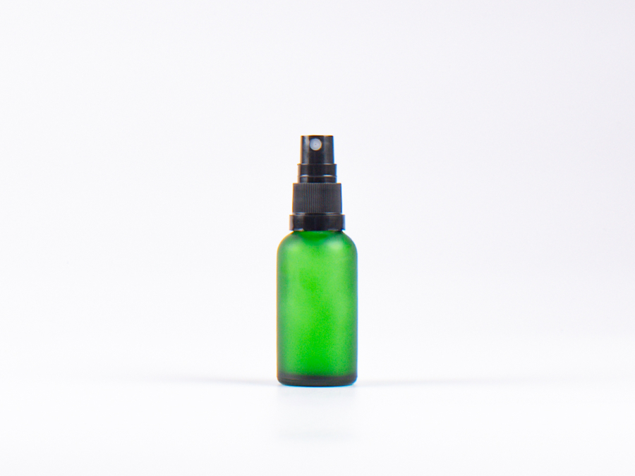 matte Grünglasflasche mit Kunststoff-Zerstäuber – leicht, praktisch, vielseitig