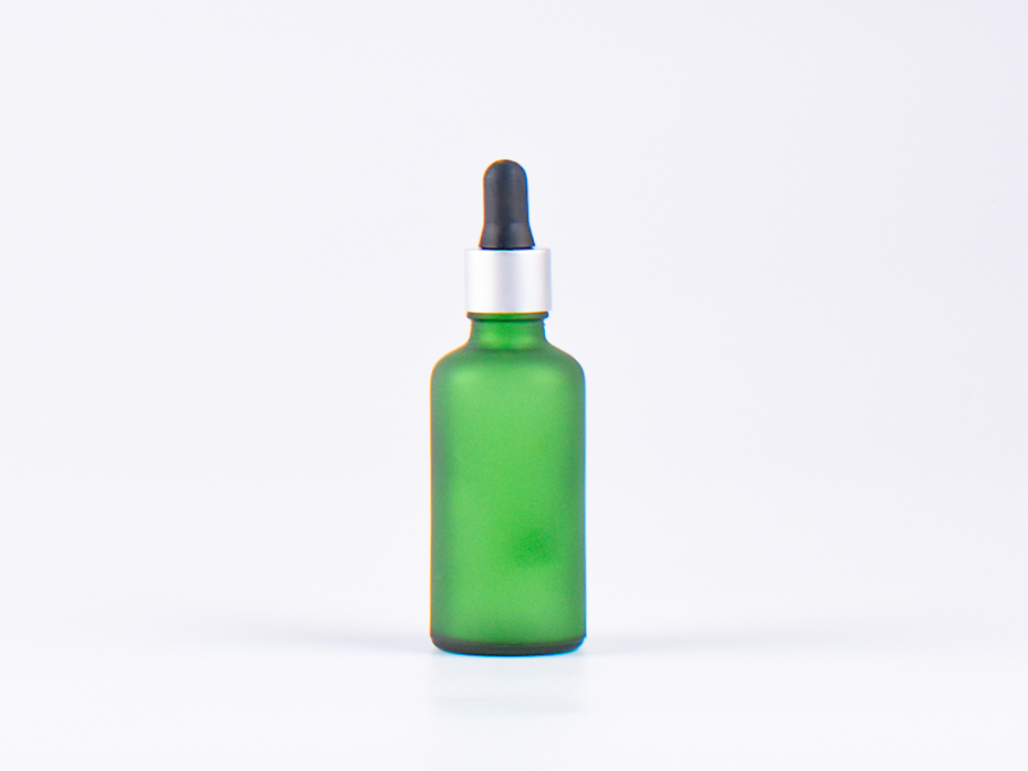 Grünglasflasche 50ml, mit Pipette silber-matt