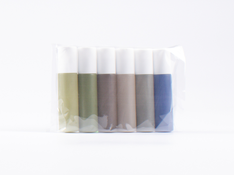 Mit diesem Set erhalten Sie je 1 Flasche in allen Farben: blue, light grey, dark grey, green, light green, coffee